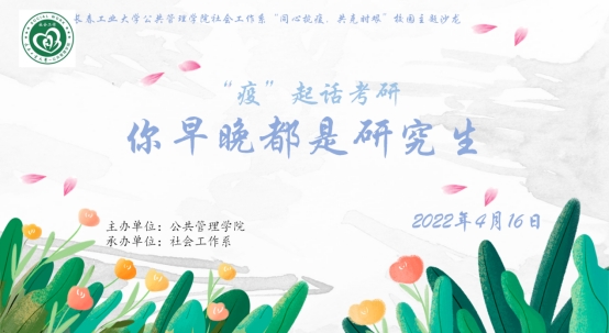 开展第一场主题为《“疫”起话考研——你早晚都是研究生》的大学生校园主题沙龙。本场活动邀请到东师马克思主义哲学专业的张皓学长、吉大英语专业的李超学姐、中南财大社会工作专业的王凯强学长作为特约嘉宾,香港三级