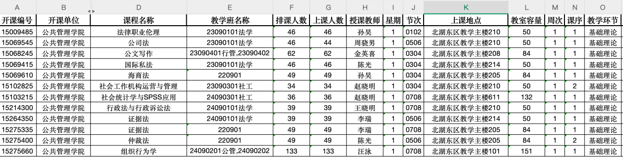 2025 年 9 月 1 日为开课首日,全院上下紧密配合,各门课程顺利启动,共计12门课程开课,覆盖了法学、公共事业管理、社会工作、行政管理四个专业。开课首日开课情况一切正常,教学秩序井然。