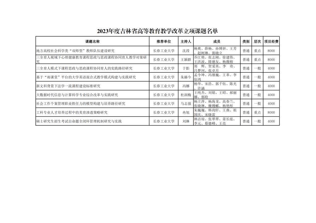 香港三级 -2023年度吉林省高等教育教学改革立项课题名单