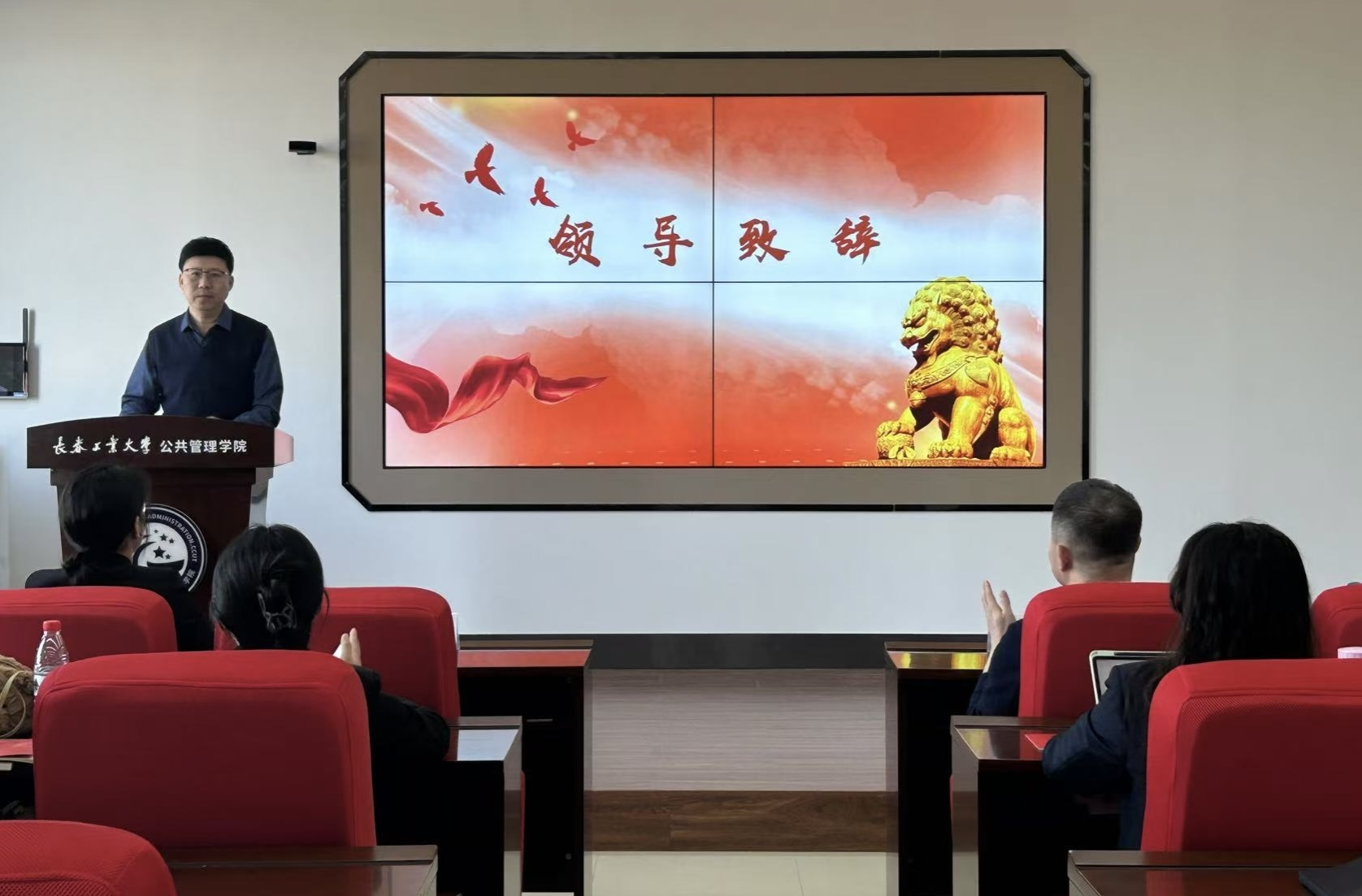 党委于主教301开展了第55期入党积极分子开班仪式,学院党委书记于洪致辞,并做了《坚定理想信念,争做有理想的新时代大学生》党课第一讲。