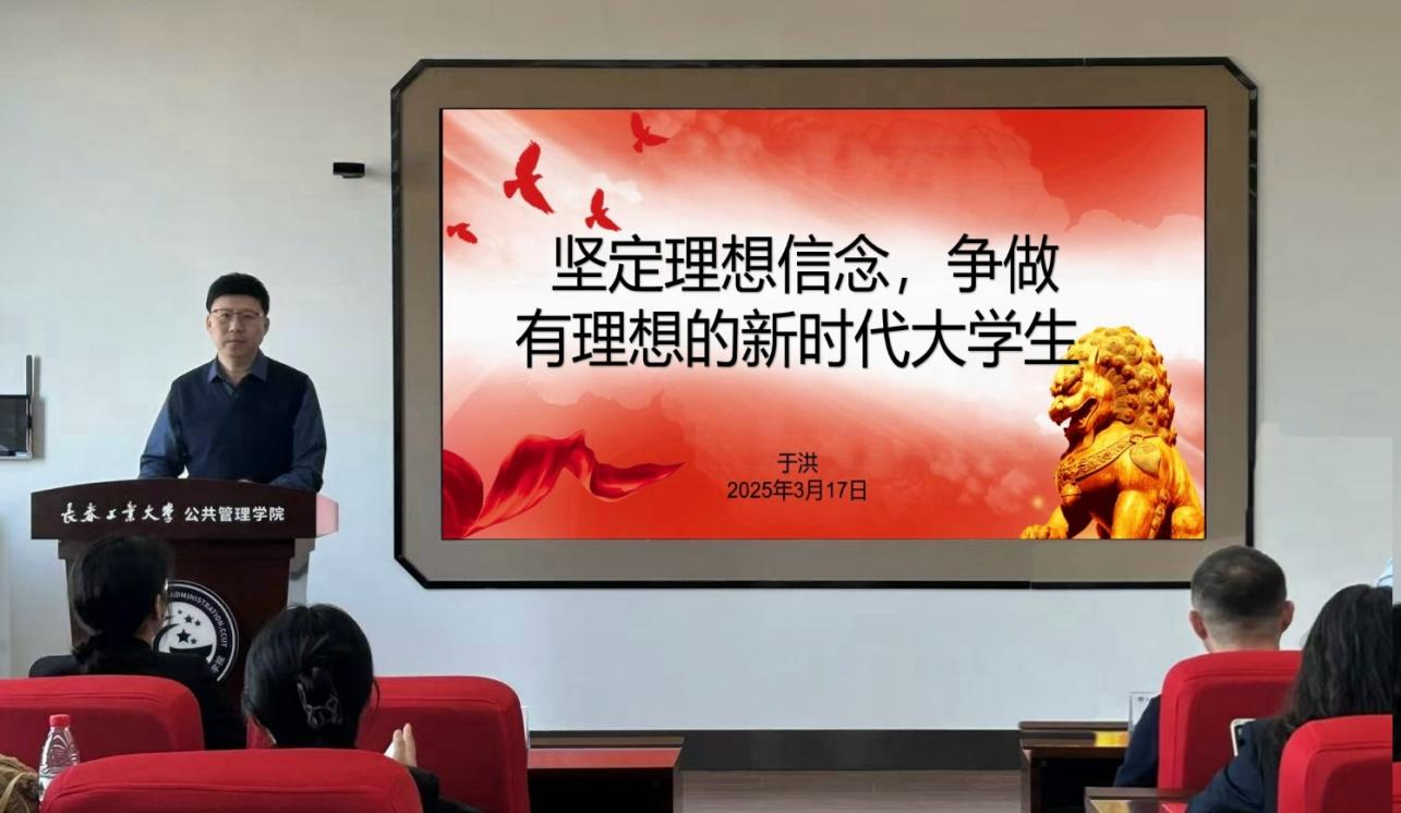 于洪书记做了《坚定理想信念,争做有理想的新时代大学生》党课第一讲。以我们国家站起来,强起来的原因、过程作为切入点,充分肯定了理想信念赋予我们的强大精神动力,并对同学们提出三点要求:首先,要加强理论学习,认真研读马克思主义经典著作,学习党的先进理论,不断提升自己的思想境界;其次,积极参与社会实践,在实践中检验和强化自己的理想信念;最后,要将个人理想与国家发展紧密结合起来,把实现中华民族伟大复兴的中国梦作为自己的奋斗目标。