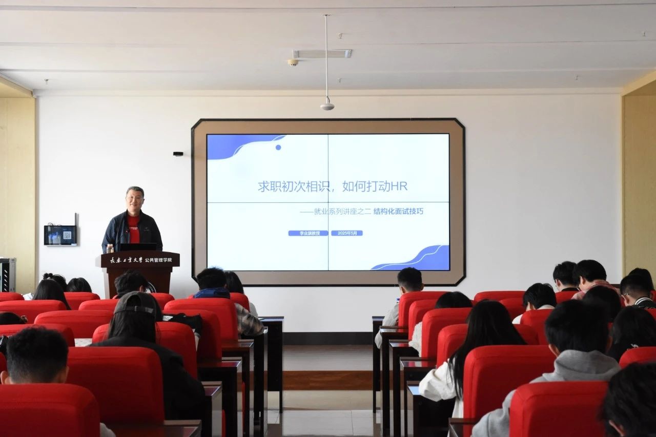在《求职初次相识,如何打动HR——结构化面试技巧》讲解环节中,李业旗教授着重强调结构化面试作为企业人才选拔关键环节的重要性。他从求职动机、人职匹配、价值观及忠诚度等面试官核心考察维度切入,结合真实案例剖析精准应答策略,引导学生站在考官视角掌握面试技巧,强化岗位适配度表达能力。