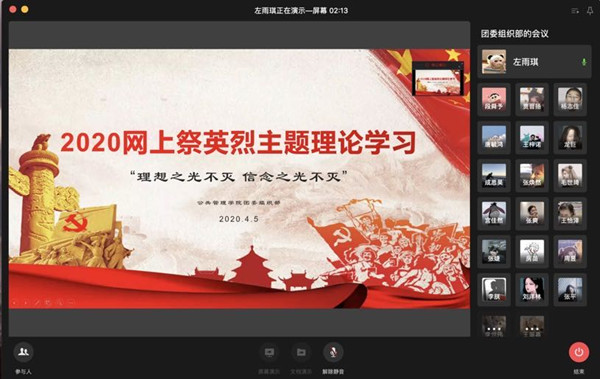 “求是”理论社团通过网络平台开展清明网上祭英烈“理想之光不灭,信念之光不灭”主题理论学习系列活动。学院团委副书记张宇航同学主持,全体成员参加学习。
