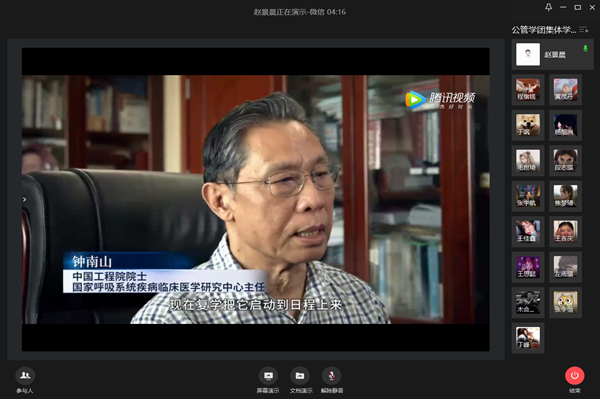 本次集中理论学习的主要内容为教育部4月20日学校疫情防控专家报告视频会。会上,中国工程院院士、国家呼吸系统疾病临床医学研究中心主任钟南山,中国工程院院士、浙江大学医学部教授李兰娟分别就国际、国内新冠肺炎疫情形势研判作专题报告;复旦大学附属华山医院感染科主任张文宏教授就如何做好学校新冠肺炎疫情防控工作作专题报告。院士专家还就如何做好开学复课准备、如何及时应对突发状况、疫情期间师生行为规范等问题提出专业建议。