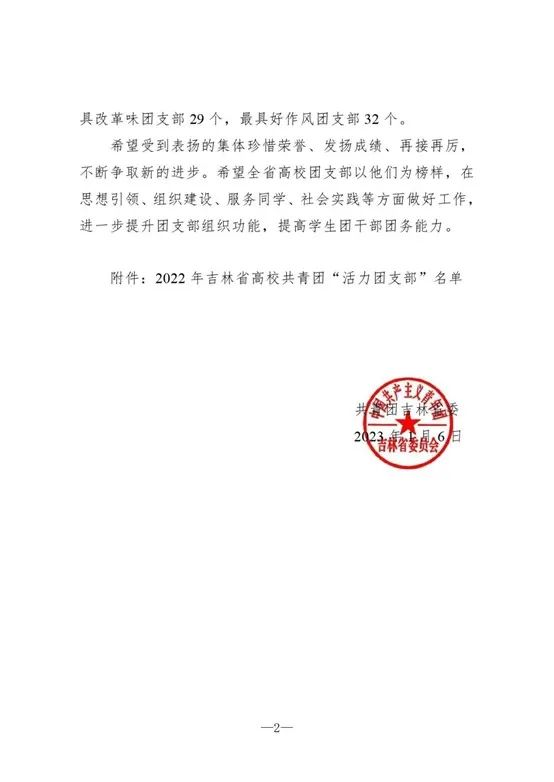 团委积极进取,探索创新,在2022年吉林高校共青团“活力团支部”评选中,香港三级