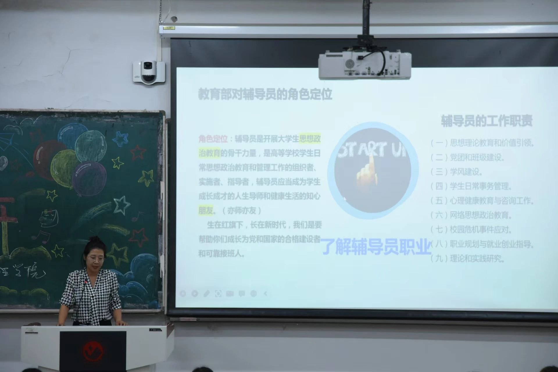 的各项工作中去。同时,她希望新生要学会自我管理,严格要求自己的言行举止,设定学习目标,不断提升自己,努力成长为复合型人才。