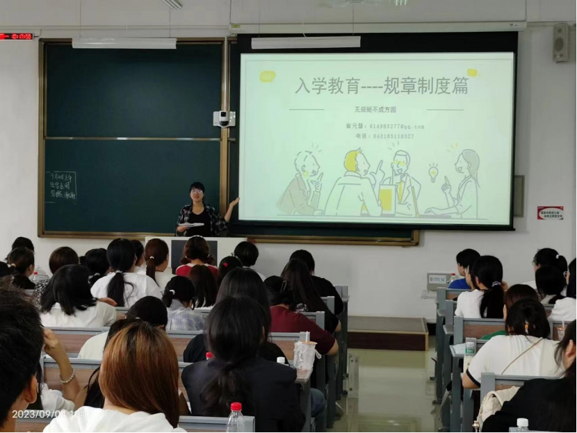 2024级新生辅导员崔元慧老师组织带领全体24级共207名同学在西阶101进行了校规校纪的专题学习。