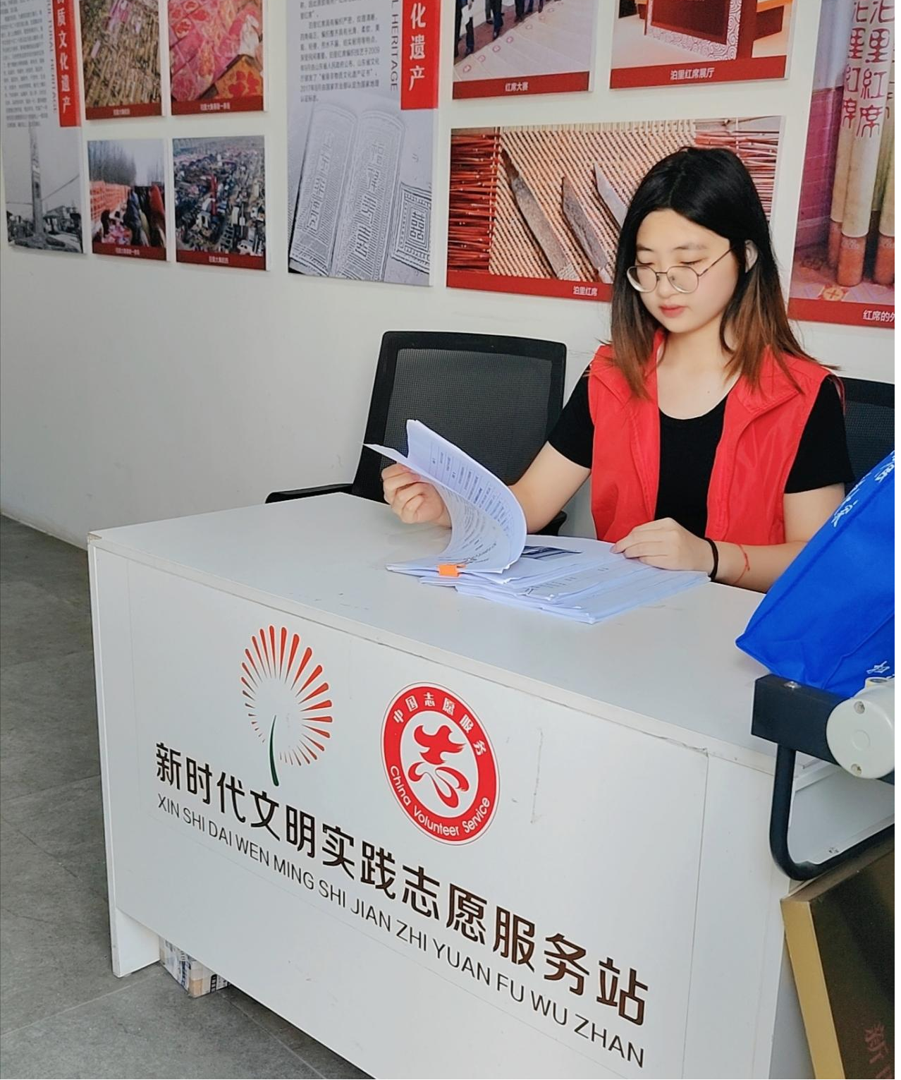 220901班的厉笑燕,本次“返家乡”实践活动,我来到了山东省新时代文明实践服务站,主要工作是向本地或者外地的来访人员进行引导,为社区周边及办公室业务提供服务,为视力残疾人和听力残疾人提供信息无障碍服务。