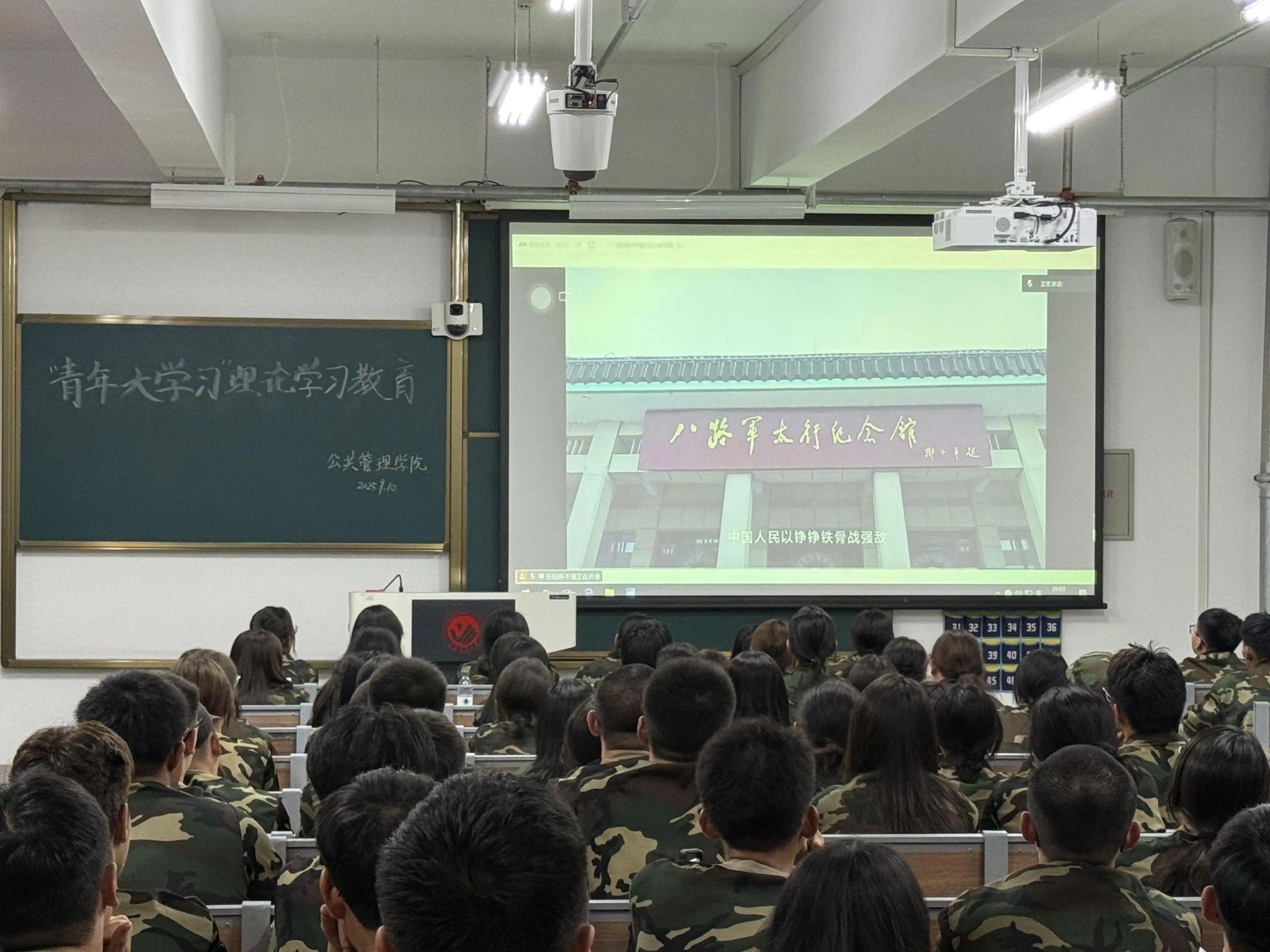 2025级新生于9月11日在北湖东校区主楼201开展青年大学习理论学习教育活动,通过观看专题学习视频,共同回顾波澜壮阔的抗战历史,缅怀革命先烈的丰功伟绩,引导同学们深入学习理论知识。