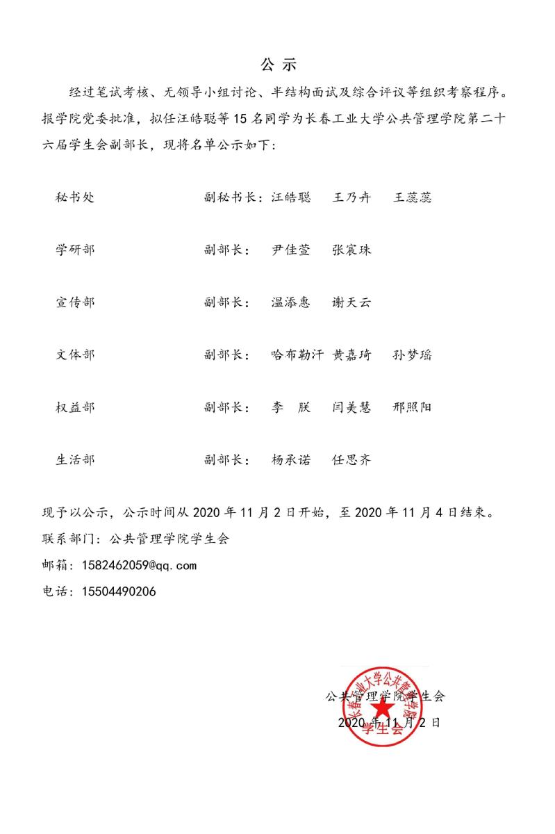 香港三级 第二十六届学生会学生干部名单公示