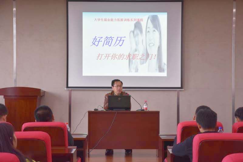 召开简历制作专题培训会,会议由李东福老师主持,为同学们讲解关于简历制作的相关方法与注意事项。