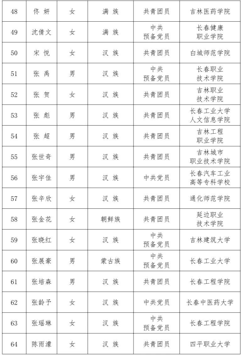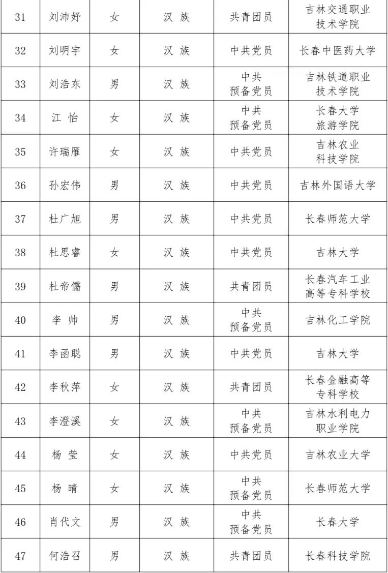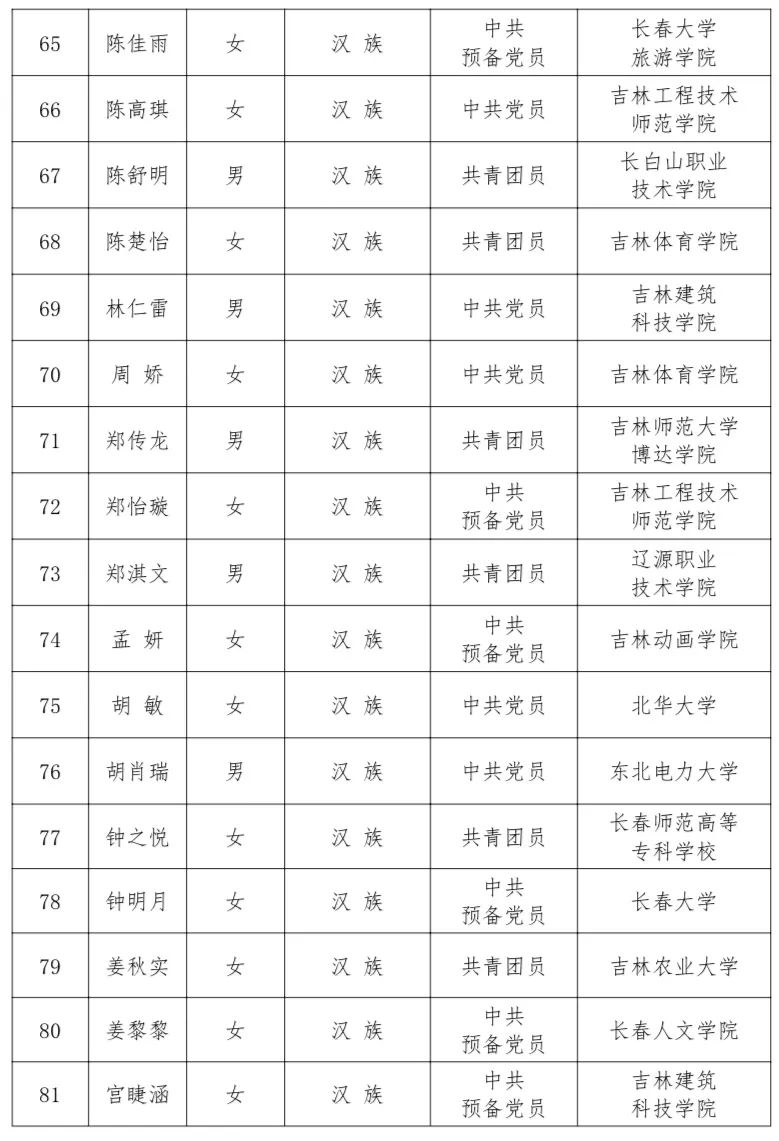 2022吉林省“优秀大学生”寻访活动结果