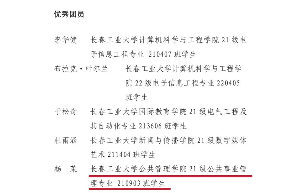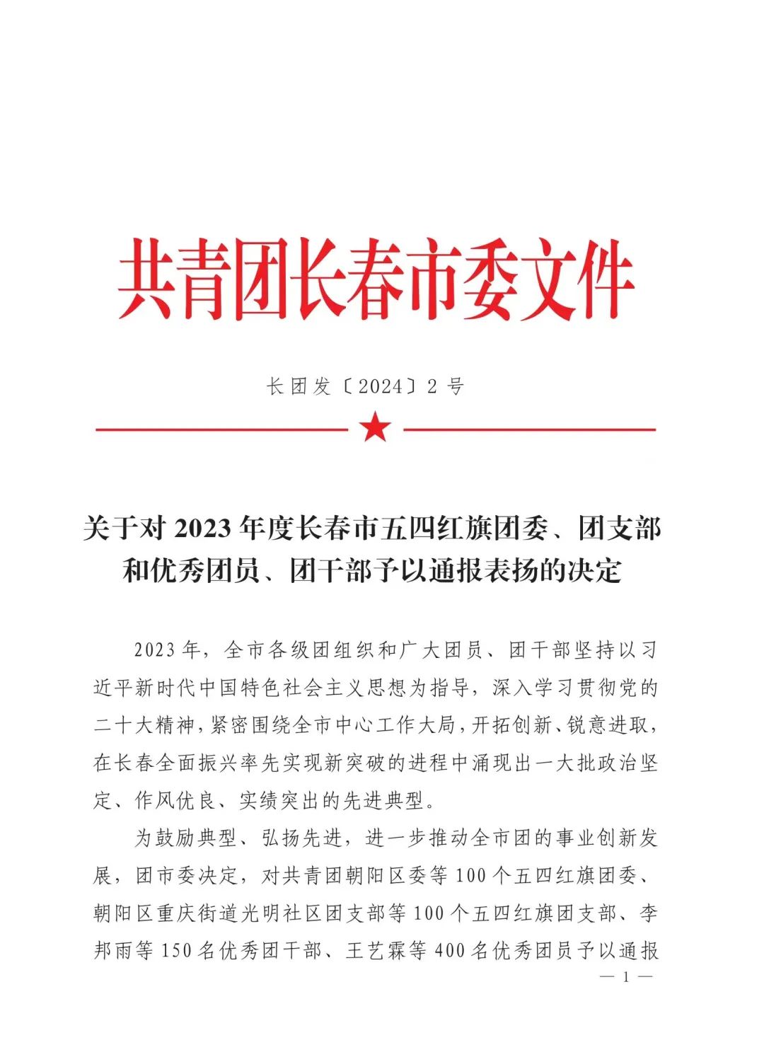 共青团长春市委于近日公布了2023年度“长春市优秀团员”评选结果,香港三级 210903班杨茉同学荣获2023年度“长春市优秀团员”荣誉称号。