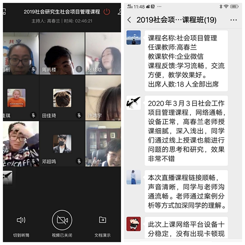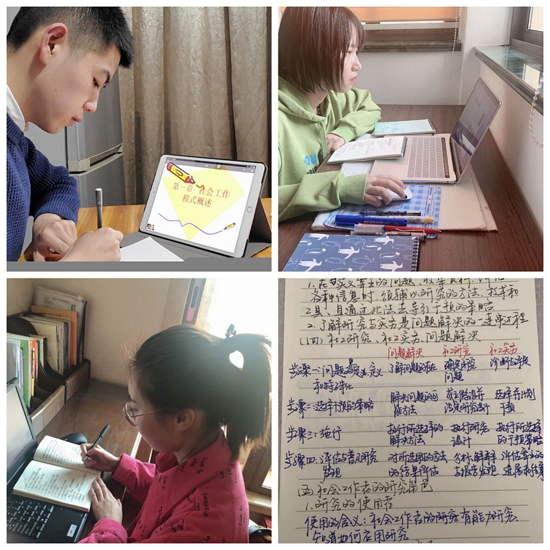 在这个特殊的时期,上课方式从“面对面”变成了“屏对屏”,师生们的交流从线下转移到线上。为保证高质量授课的有序开展,学院教师们提早建立了以课程名称命名的微信群,用于辅导答疑及发布消息。准备了因网络问题及其他突发情况的应急预案,与学生在平台中反复进行了测试演练及课程试讲,上传PPT课件及中国慕课资源让学生们提前做好预习。