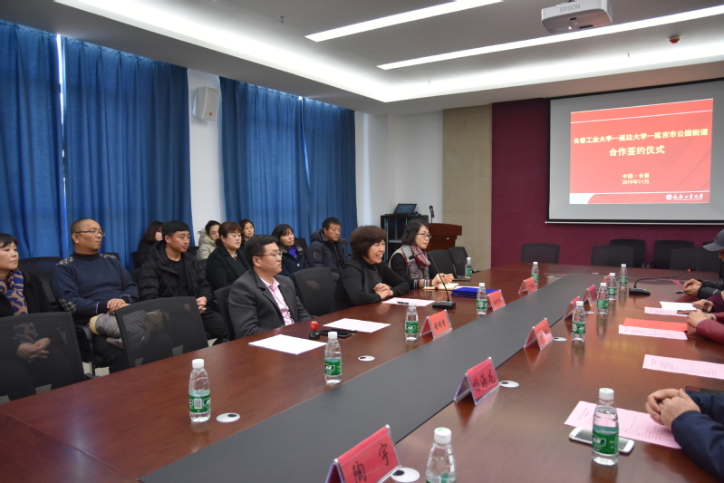 会议室隆重举行合作签约仪式。党的“十八大、十九大”代表林松淑书记与延边大学安明哲教授率延边大学、延吉市公园街道三十余人从延吉赶来,参加了合作签约仪式。长春工大出席合作签约仪式的有香港三级