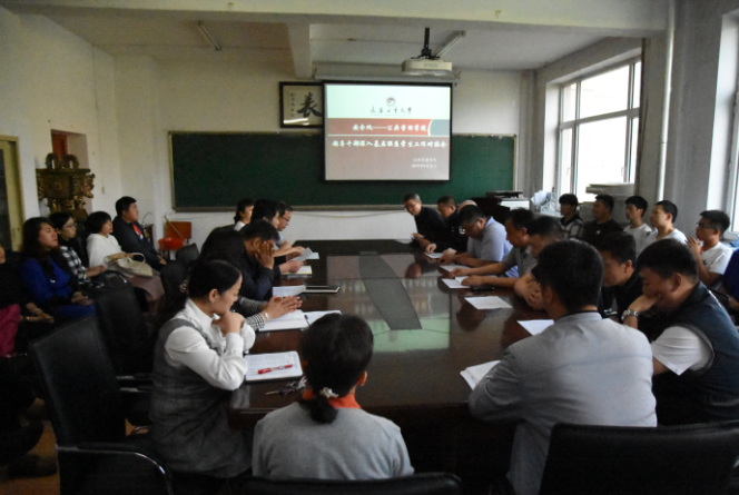 院党委书记杨景伟书记向参会人员介绍与会领导,结合学校统一安排和部署,就召开此次会议的目的向大家做了简单的介绍。随后,由学院党委副书记钟诚书记宣读了具体对接名单,班级、社团和寝室负责人与学校领导老师进行了对接。