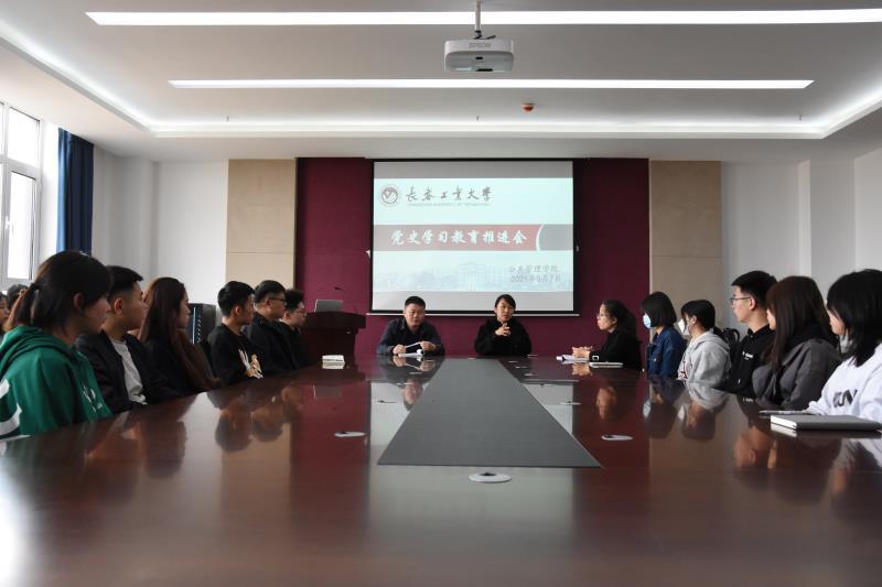 5月7日中午,学院召开党史学习教育推进会,本次会议由团委书记陈磊老师主持,学院党委副书记王越老师、20级辅导员鞠信鸽老师出席本次会议。