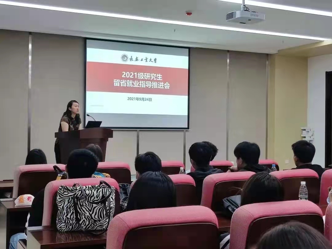 于北湖校区东区主楼301室召开2021级研究生与部分本科生留省就业指导推进会,党委副书记王越老师向各位同学介绍了香港三级