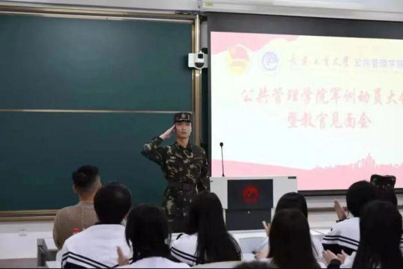 教官见面会环节。首先,三位承训教官分别进行自我介绍,并与所在排班干部进行对接。随后,排长王帅带领同学们学习军训学生行为规范等各项纪律要求,通过进一步细致讲解,使同学们对此次军训有了更充分的了解与准备。最后,由教官王梓带领同学们学习演唱强军战歌。