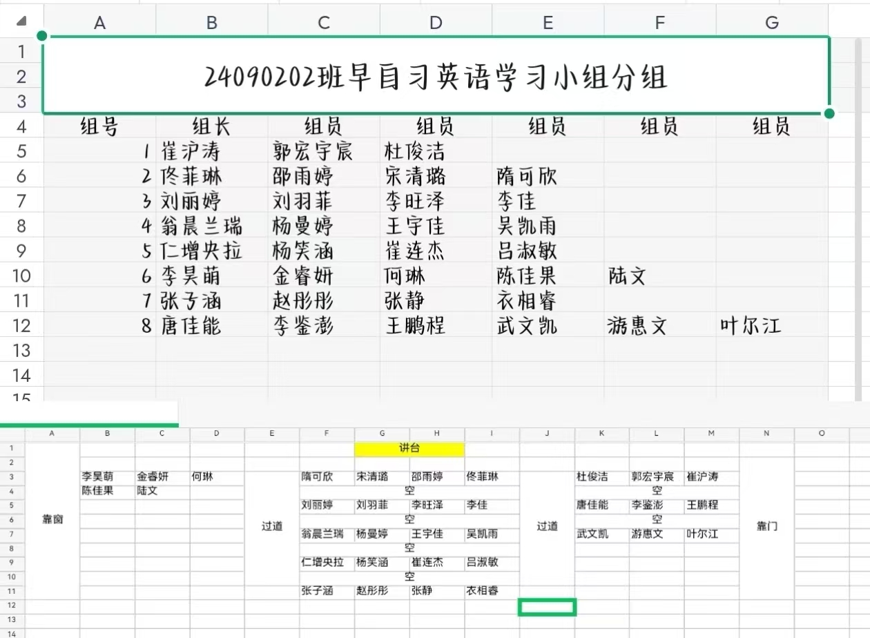 2.小组学习:班级共35名同学,5人,设置一名组长,小组长由过了四六级的同学担任组长,监督与帮助同学们提升英语。
