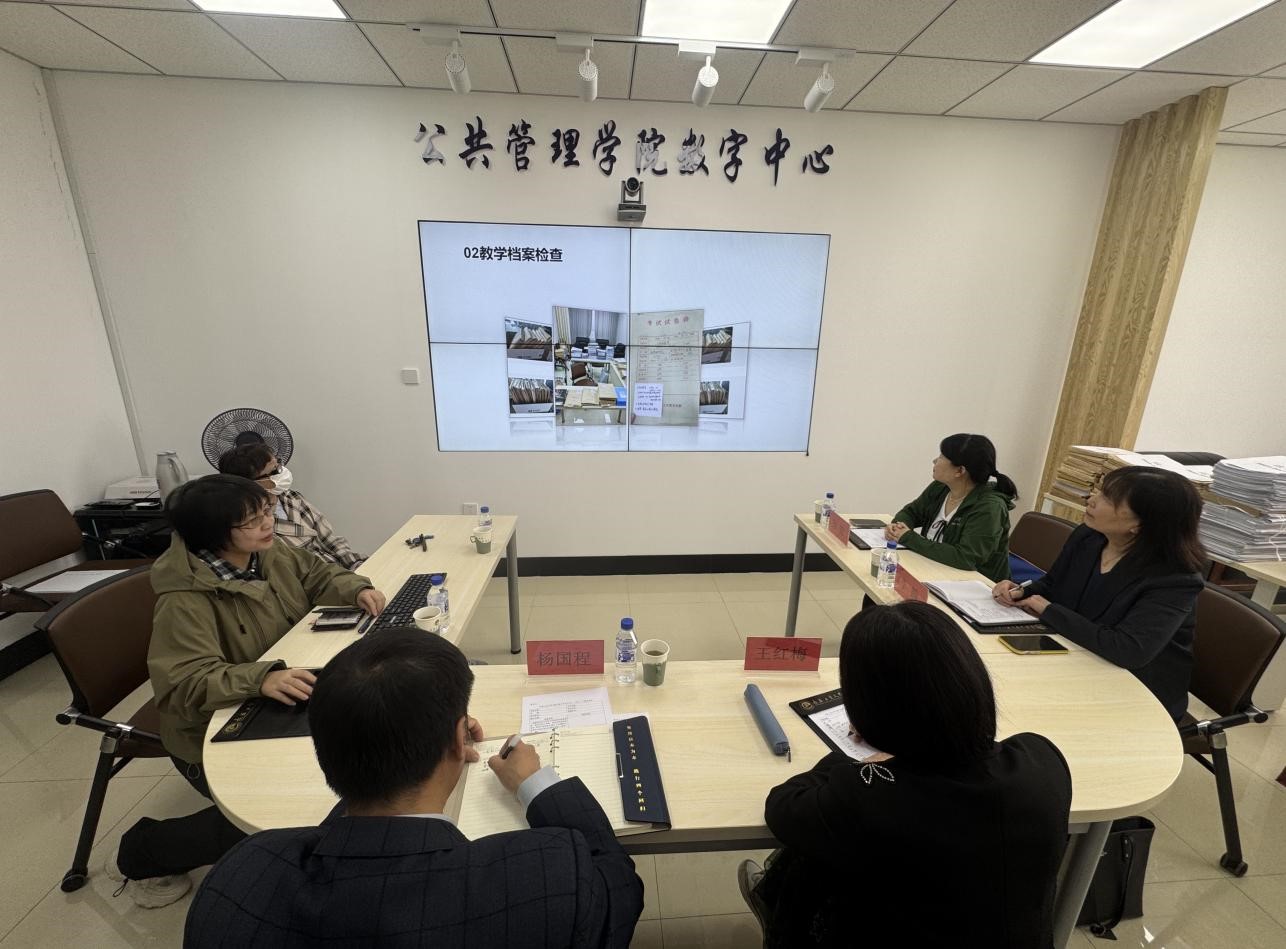 冯娜副院长对学院期中教学检查工作的开展情况、存在不足、持续改进计划等内容做了汇报。校督导组全面细致地检查了理论、实践教学档案归档、毕业论文过程性材料及完成情况等,指出存在问题,提出有针对性的整改意见。
