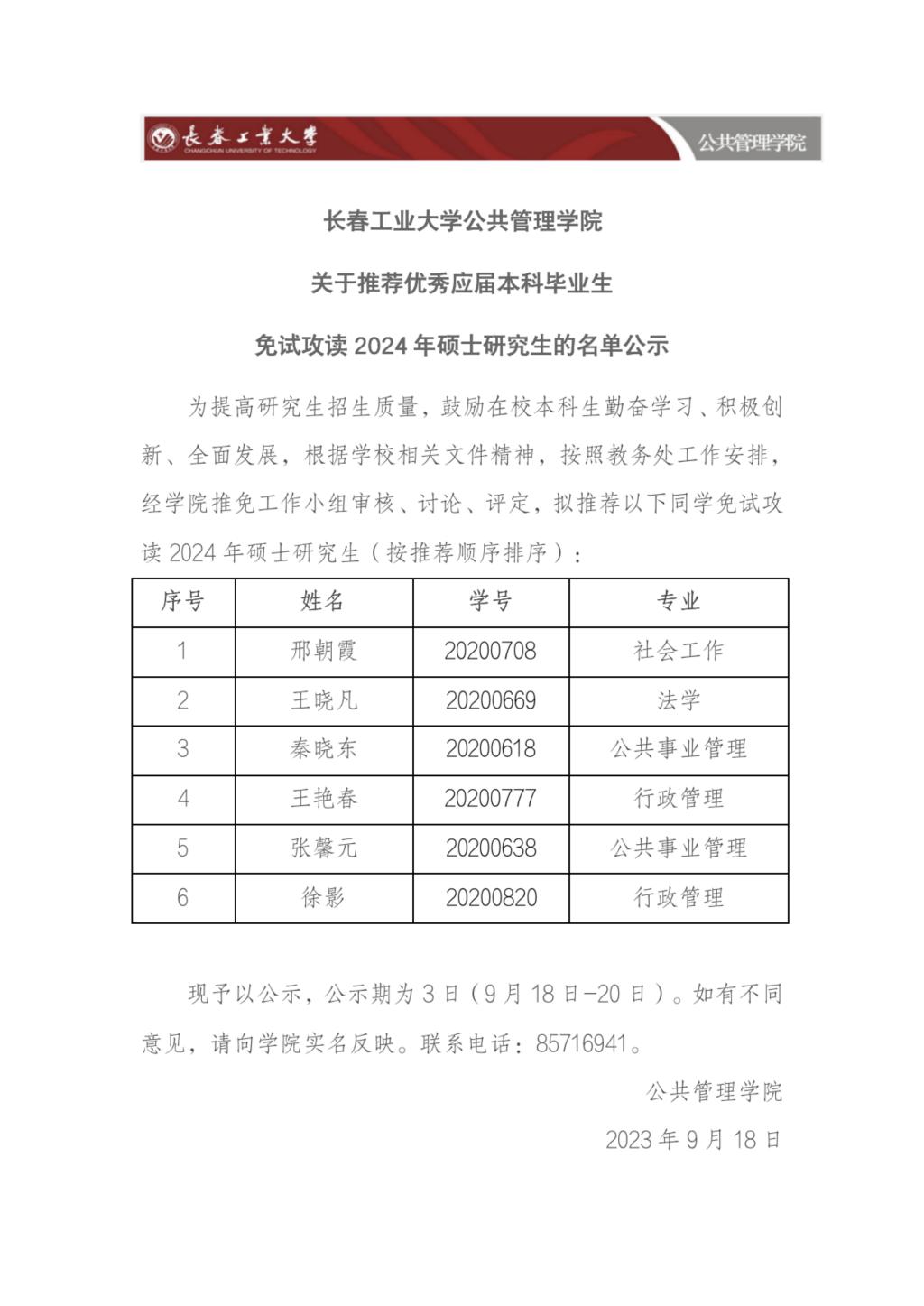 香港三级 关于推荐优秀应届本科毕业生 免试攻读2024年硕士研究生的名单公示
