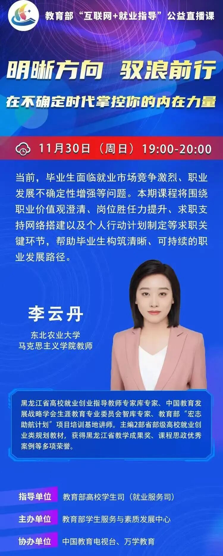 课程预告——教育部“互联网+就业指导”公益直播课:明晰方向,驭浪前行——在不确定时代掌控你的内在力量